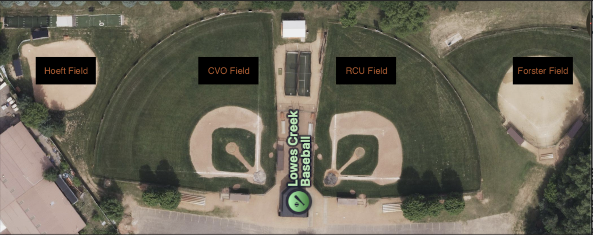 Parking at the complex can be a bit tight, so we do ask that everyone be cautious and courteous. Please drive slow and keep an eye out for foul balls and stray kids!